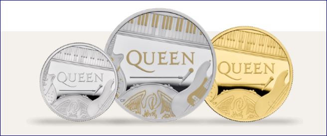 La moneta rientra nella nuova serie “Music Legends” che Royal Mint dedica agli artisti e alle band che hanno fatto la storia della musica. La moneta, la prima che la Gran Bretagna dedica a una band, arriva a 50 anni dalla nascita dei Queen. Per la stessa occasione Royal Mail ha annunciato l’emissione del francobollo commemorativo nel mese di luglio.